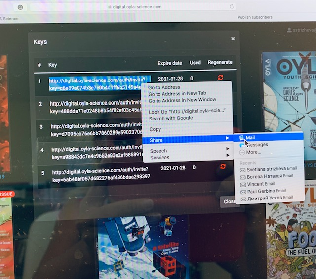 That is, the link that you sent earlier will no longer function as access to the cabinet, and the program will automatically generate a new key and you can give it to another person, the transfer of keys is unlimited - you can at least every day transmit them several times.